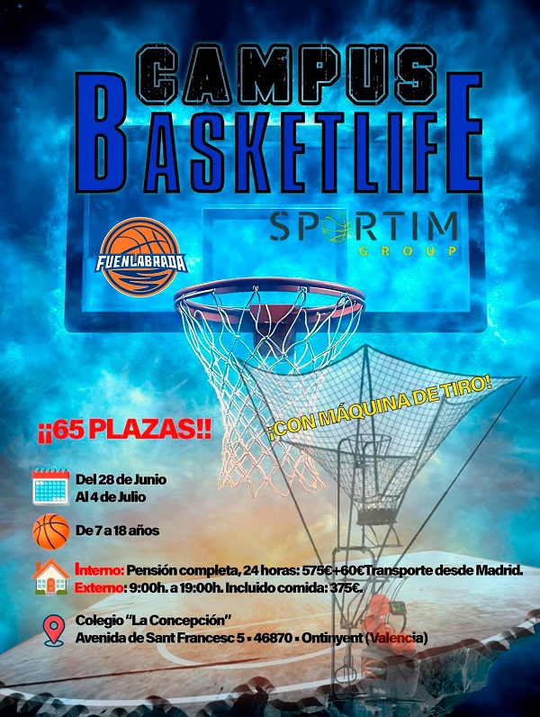 Os animamos a que viváis con nosotros el campus que hemos preparado para las fechas del 28 de junio al 4 de julio en las magníficas instalaciones de Ontinyent (Valencia). Lo haremos junto a BasketLife y al ex jugador del Fuenla Saúl Blanco, quien estará al frente del campus y convivirá a diario con los participantes. Podéis disfrutar del Campus chicas y chicos de 7 a 18 años.